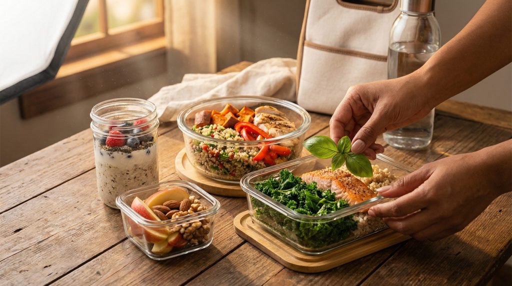 Para variar o cardápio, considere preparar sanduíches naturais com pães integrais, embalados corretamente em papel alumínio ou plástico filme para manter o frescor. Outra excelente opção são as panquecas de banana ou “crepiocas”, que podem ser feitas em lote no domingo e refrigeradas. Ao planejar suas marmitas matinais, lembre-se de separar os itens secos (como granola ou castanhas) dos úmidos, misturando-os apenas na hora de comer para preservar a crocância.